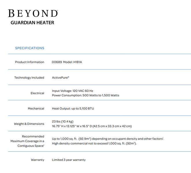 Excelent portable 5,100 BTU heater that also has ActivePure air purification,