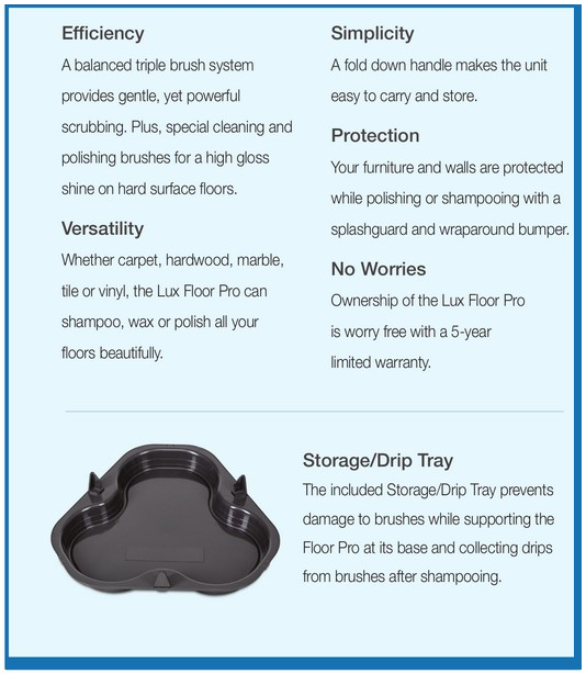 long lasting, streamlined and easy to use, the Lux Floor Pro features a